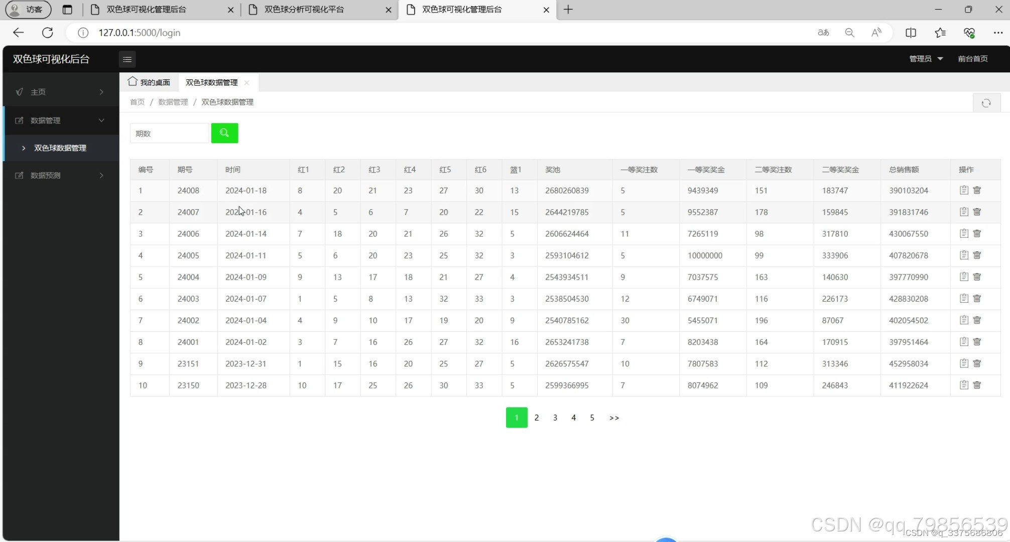 (4)双色球中奖数据管理