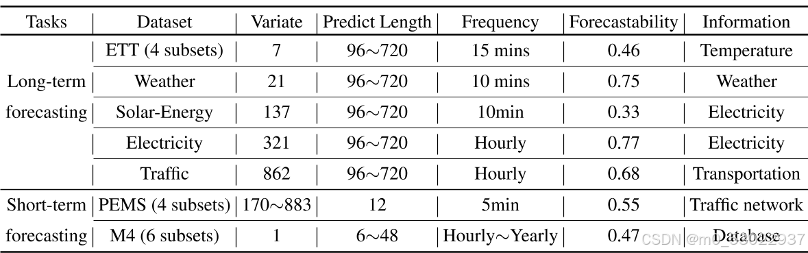 M4数据集单一变量,所有预测长度都在 [6, 48] 中。
