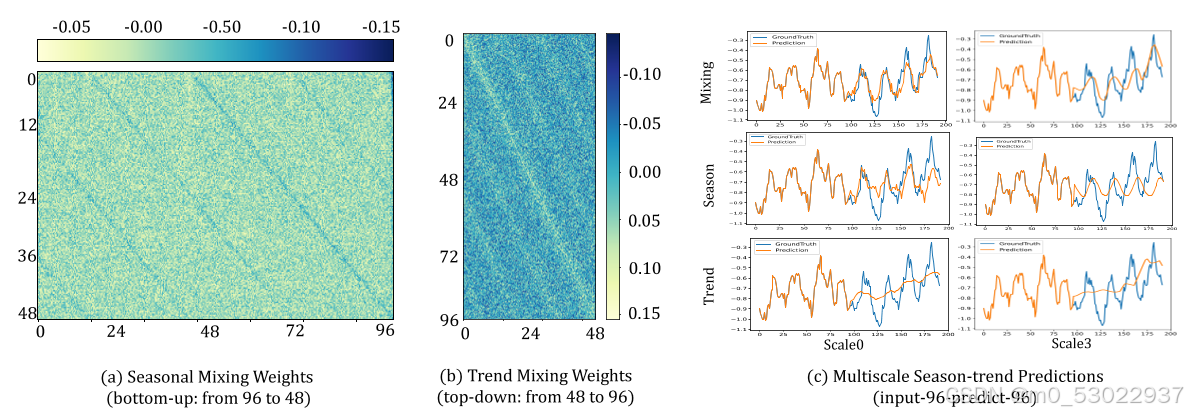在图 3(a)∼(b) 中可视化了季节性混合和趋势混合的时间线性权重