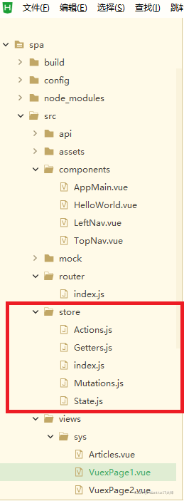 注意state/actions/mutations/getters四个文件的首字母要大写!下图的四个文件首字母全为大写