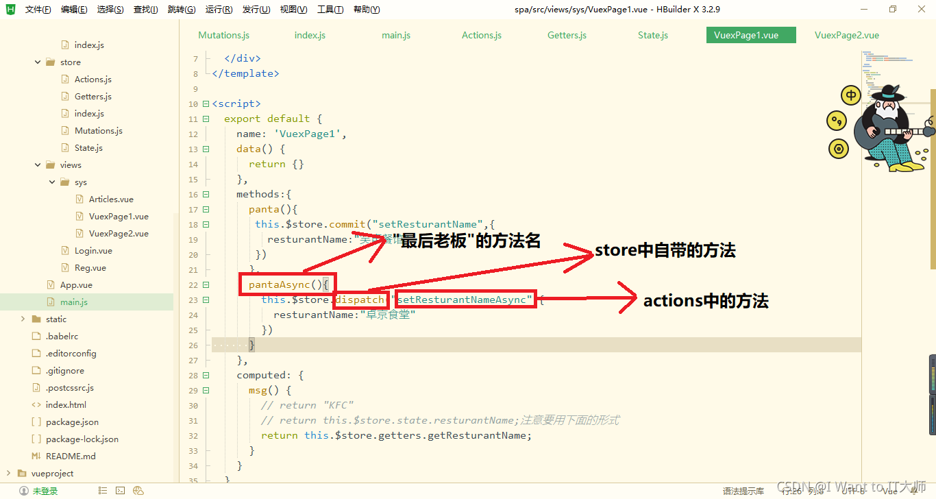 // return this.$store.state.resturantName;注意要用下面的形式