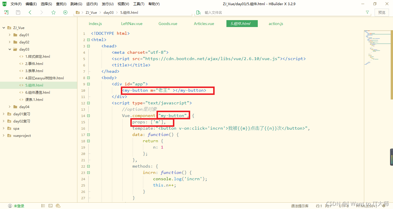 父组件-->子组件,通过子组件的自定义属性:props