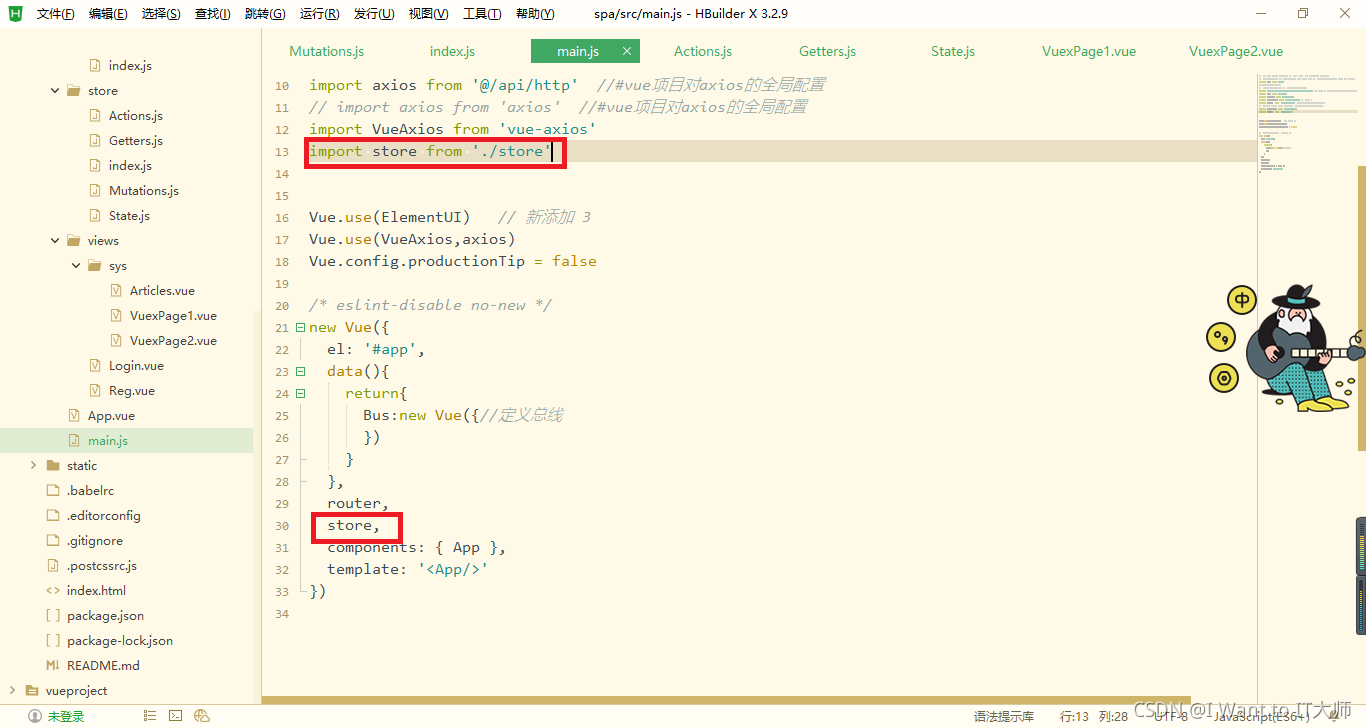 4、在main.js中导入并使用store实例