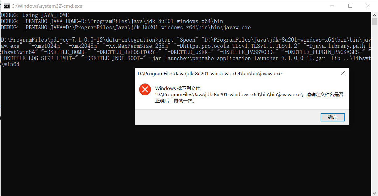 kettle运行spoon.bat时找不到javaw文件(三种方法) 此电脑右键-属性-高级系统设置-环境变量,查看jdk的变量名(我的叫JAVA_HOME)编辑sqoop.bat, 将_PENTAHO_JAVA_HOME修改成JAVA_HOME将1024、2048都改成521。
