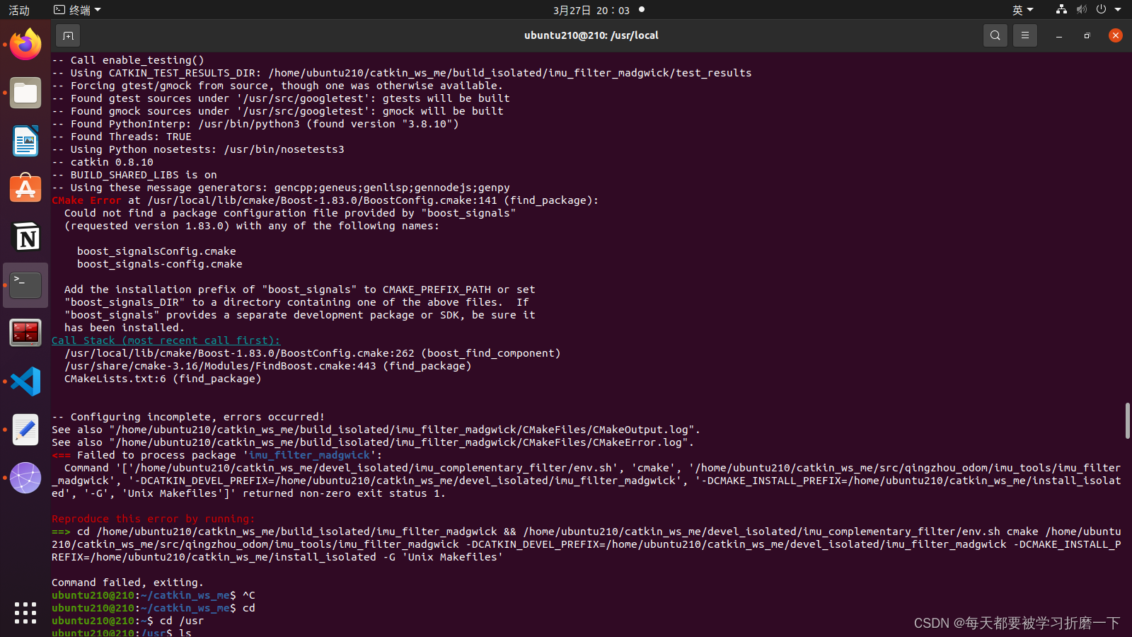 续LVI-SAM编译安装gtsam、ceres-solver1.14.0 简单点的方法就是直接用LVI-SAM 代码中的编译方法不会出很大的错误。错误一:ceres-solver中cmake ..编译错误。错误二:ceres-solver中cmake .. 错误。解决办法:eigen3.4.0更换为版本3.2.5。错误三:ceres-solver编译错误'it'解决办法:下载编译库absl。解决办法:下载库gtest。