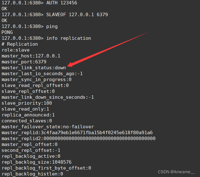 但这里有一个问题master_link_status:down????即我们并没有设置成功