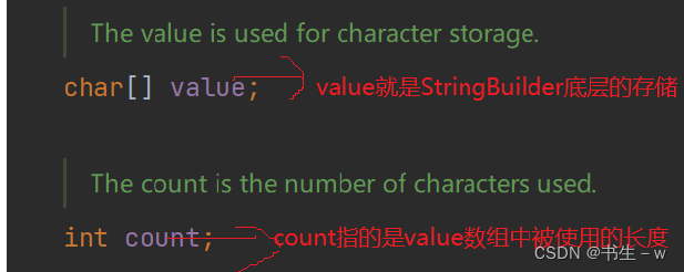 (1)StringBuilder底层:有非常重要的两个属性: