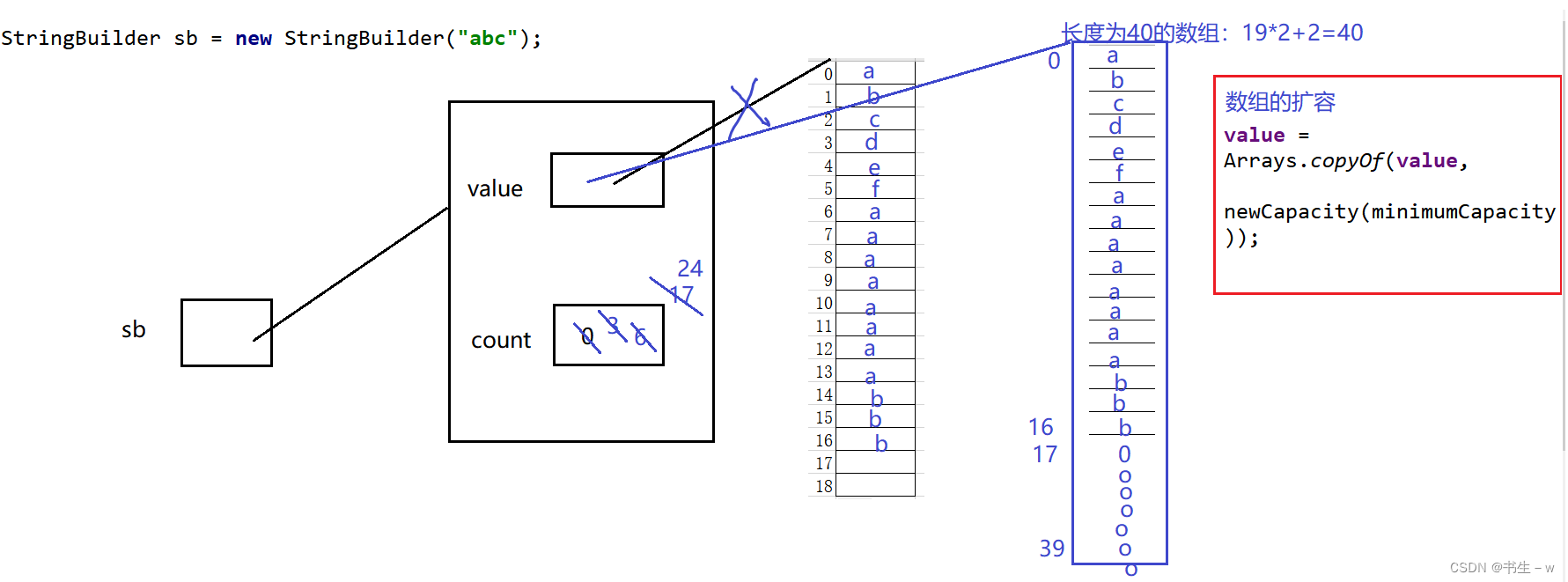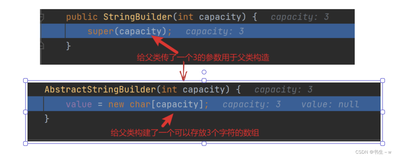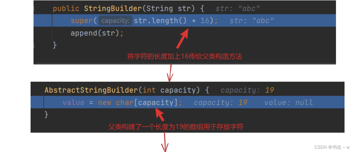 //表面上调用StringBuilder的有参构造器,传入一个int类型的数,实际底层就是对value数组进行初始化,长度为你传入的数字