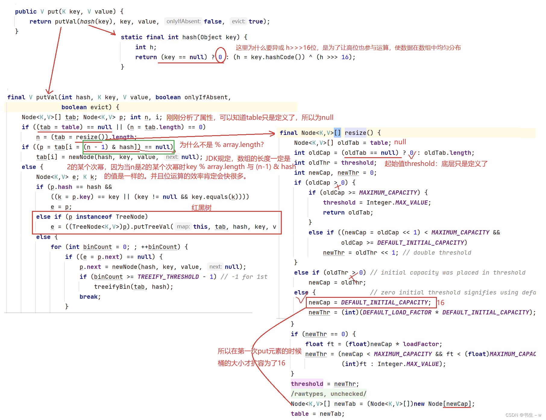 | 比较与覆写 | key必须能够比较,否则会抛出 ClassCastException异常 | 自定义类型需要覆写equals和 hashCode方法 |