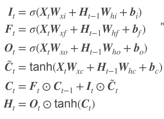 - LSTM 和 RNN/GRU 的不同之处在于: LSTM 中的状态有两个, C 和 H