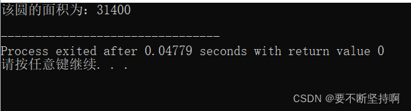 cout<<"该圆的面积为:"<<(3.14*radius*radius)<<endl;