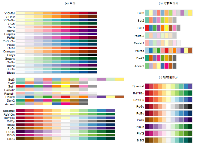 display.brewer.all(type='qual') # 展示离散型部分