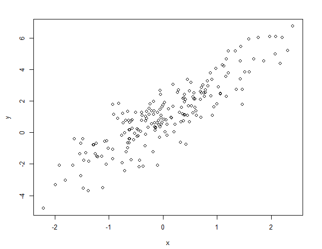 y <- 1+2*x+rnorm(200)
