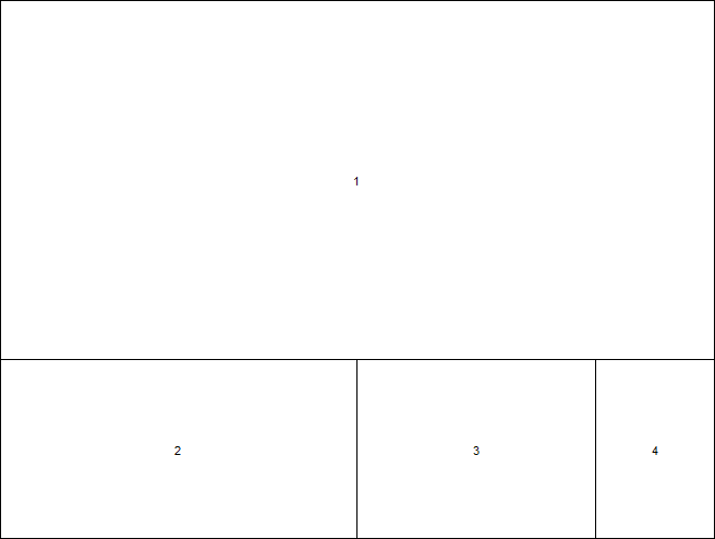 layout(matrix(c(1,1,1,2,3,4),nrow=2,ncol=3,byrow=TRUE), widths = c(3:1), heights = c(2,1))