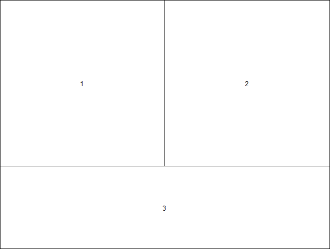 layout(matrix(c(1,2,3,3), nrow=2, ncol=2), heights=c(2,1))