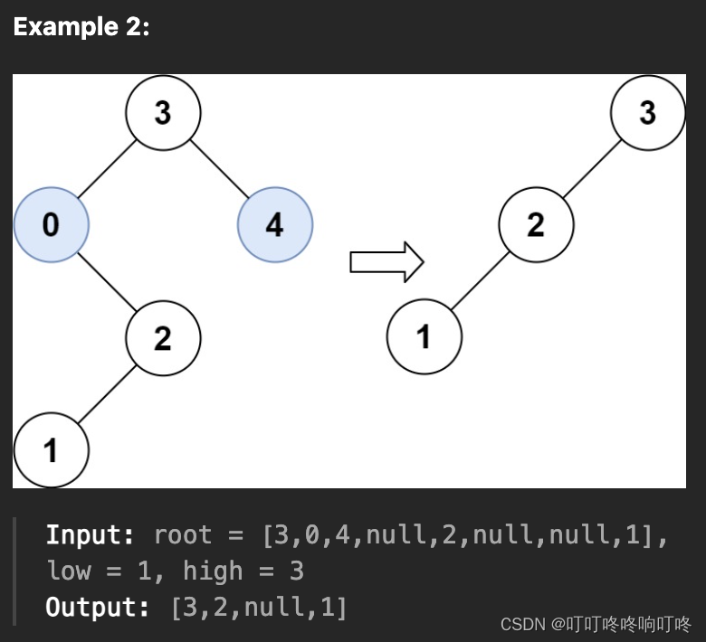 root.right = self.trimBST(root.right, low, high) # root.right 接入符合条件的右孩子