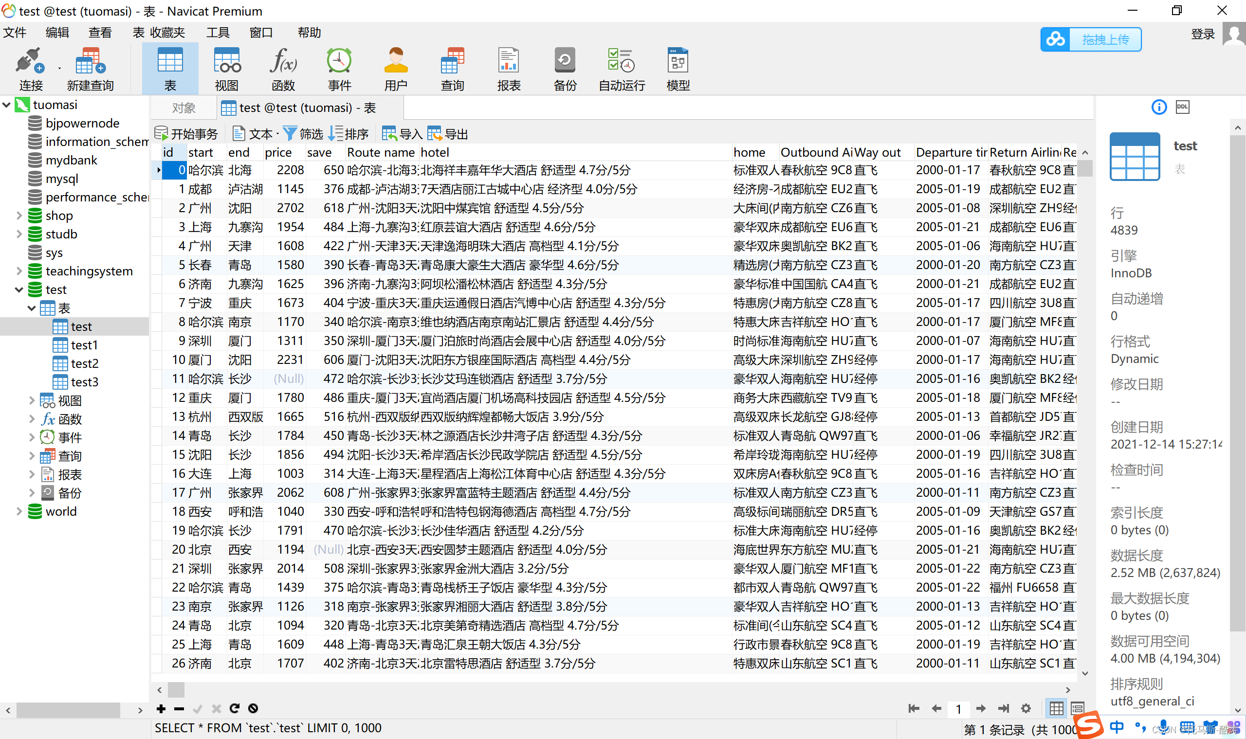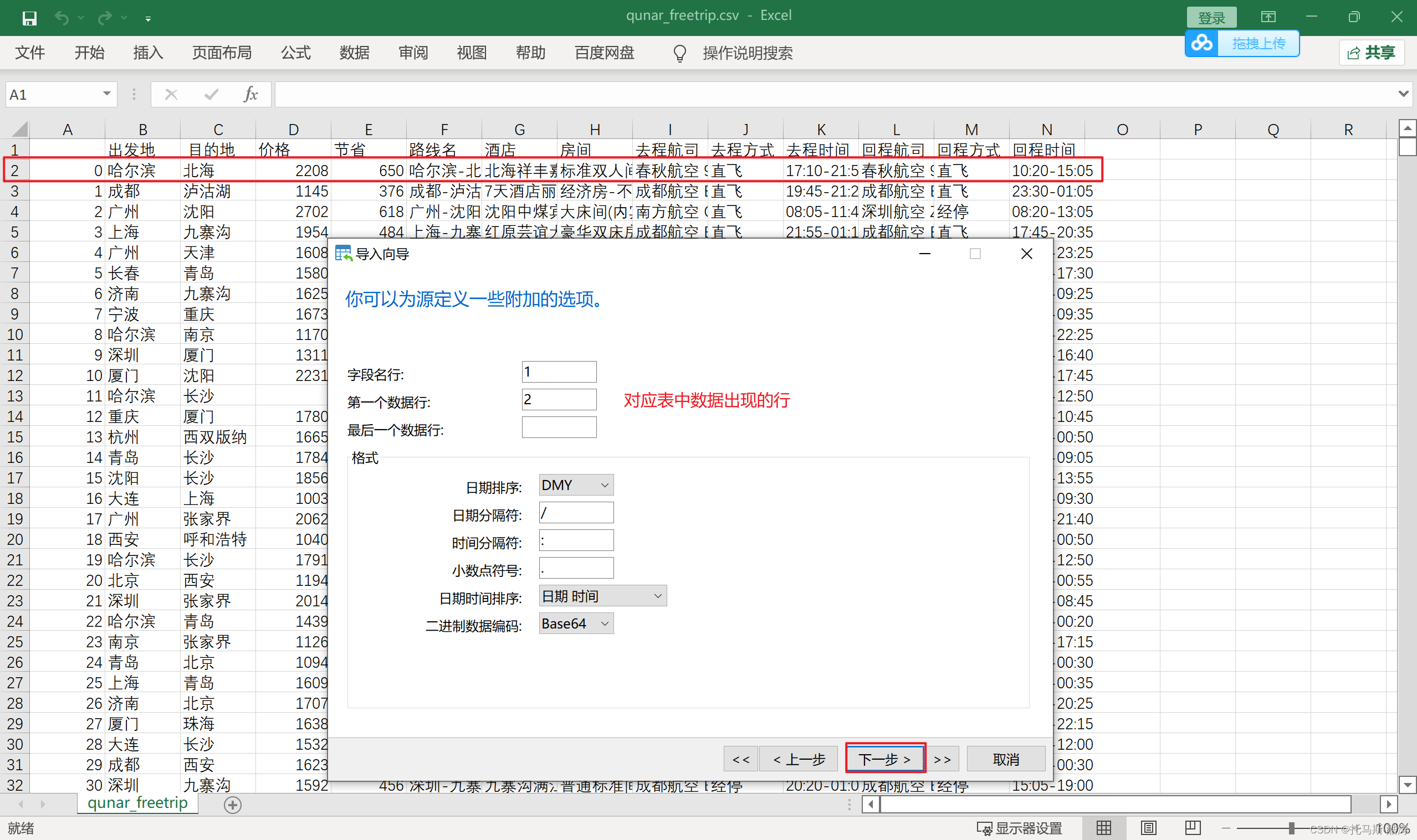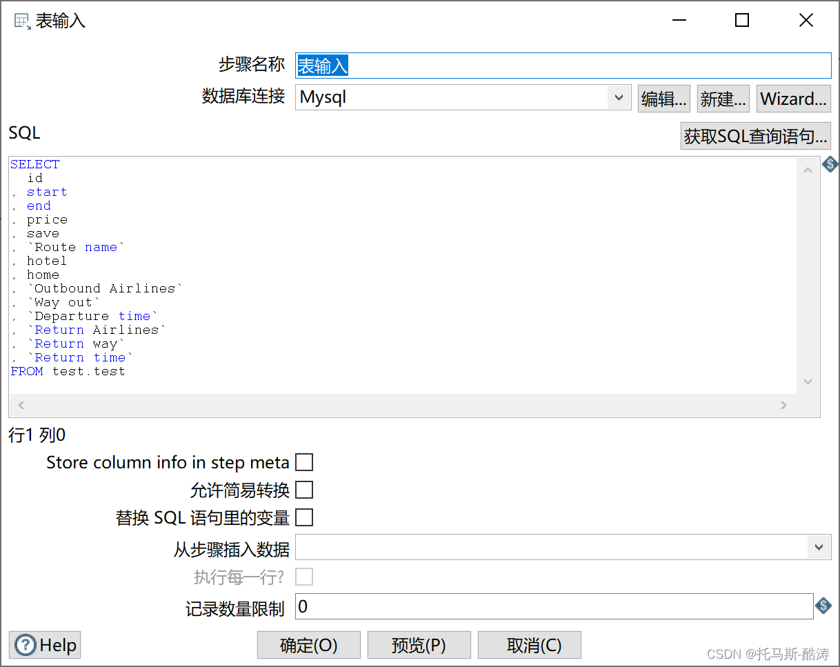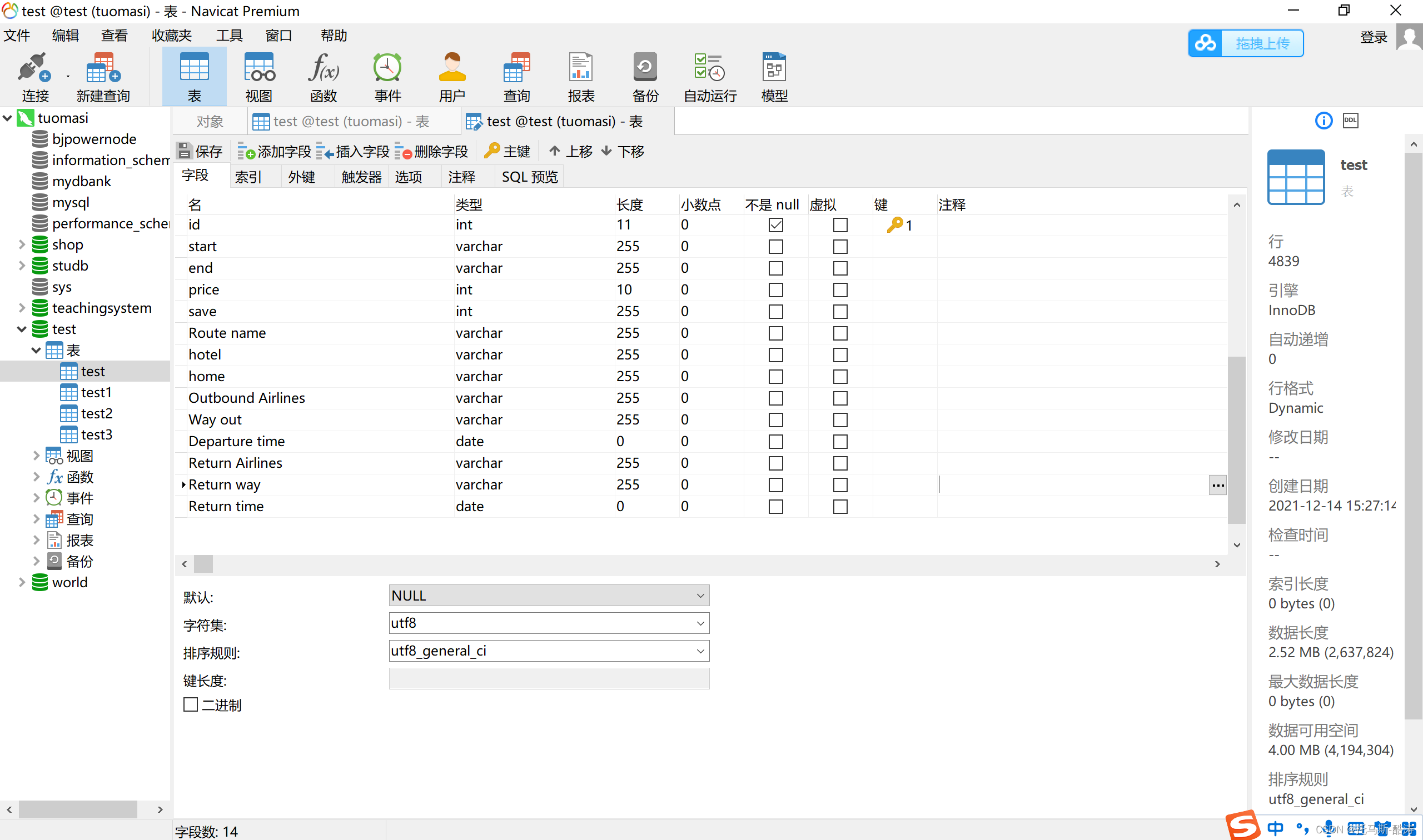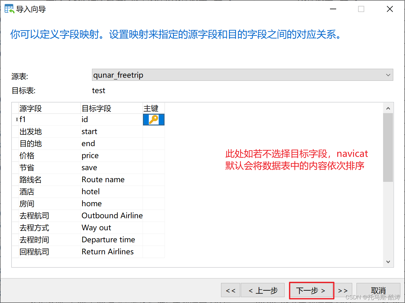 1、创建数据表,字段及其类型与CSV数据表相对应,字段名可以随便,字段个数也要一一对应(表结构如下图)