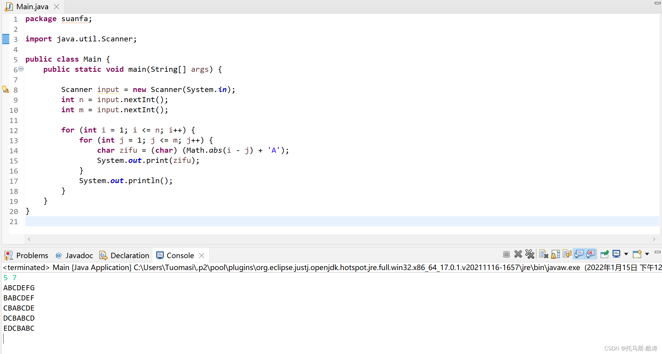 这是一个5行7列的图形,请找出这个图形的规律,并输出一个n行m列的图形。
