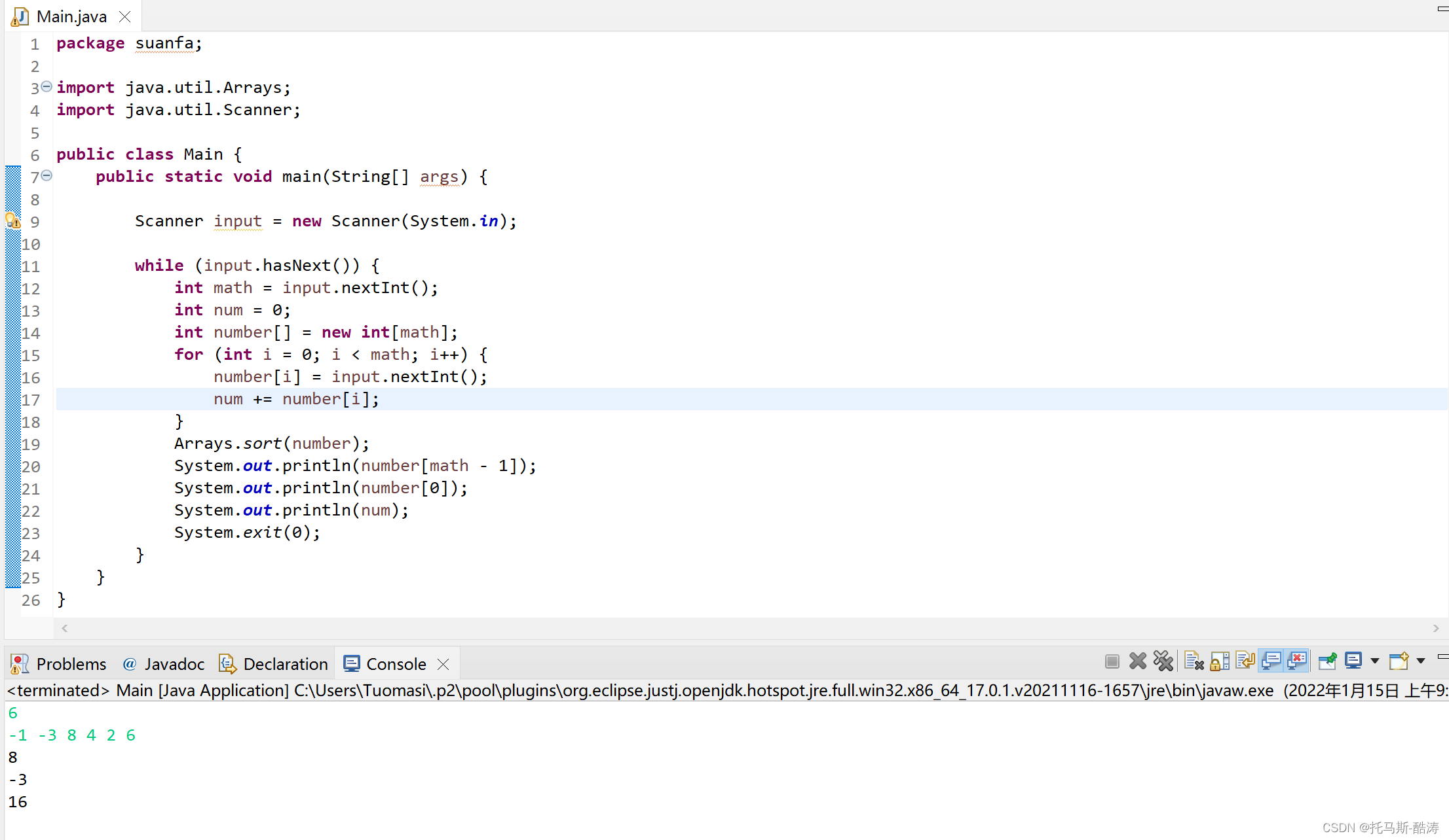 第二行有n个数,为给定的n个数,每个数的绝对值都小于10000。