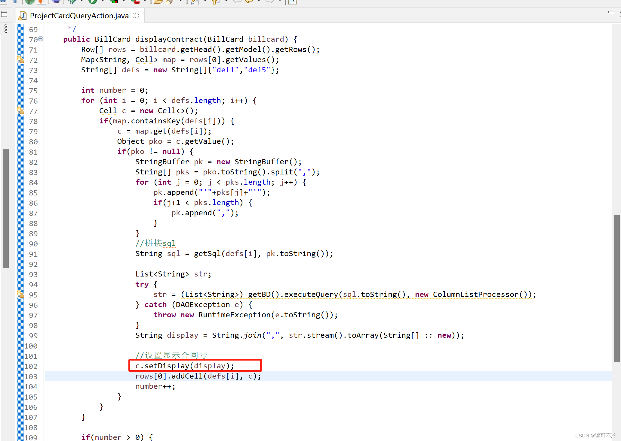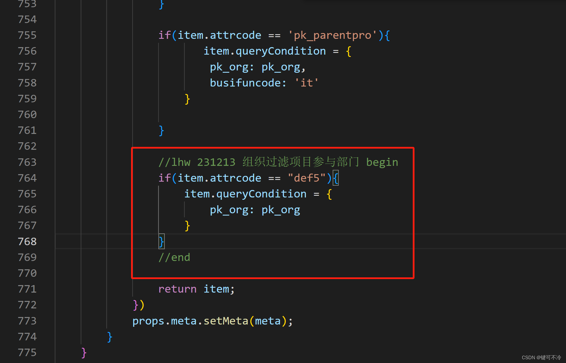 在setDeptPsnRefCond方法里面添加我的代码,我参照使用的是自定义项5,当前台触发def5就将pk_org传递到后端action里面
