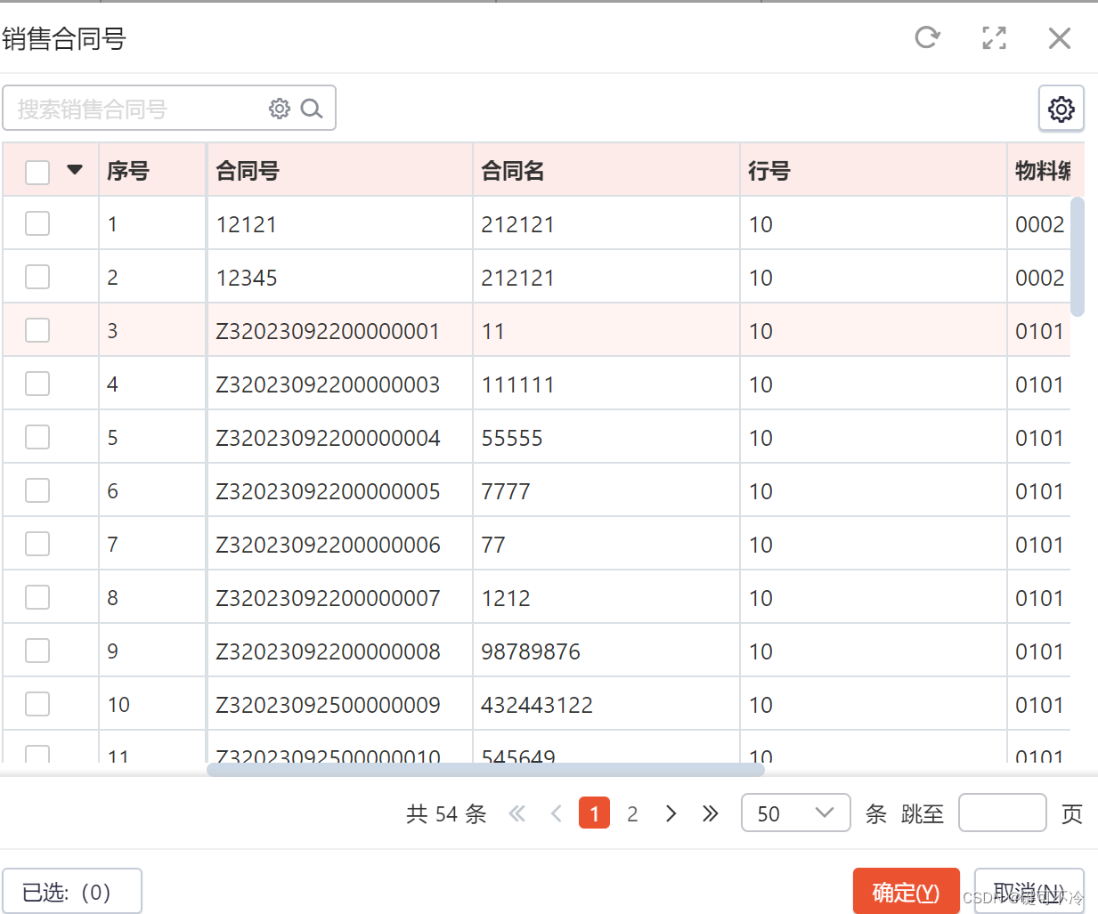 name: ["合同号","合同名","行号","物料编码","物料名称"]