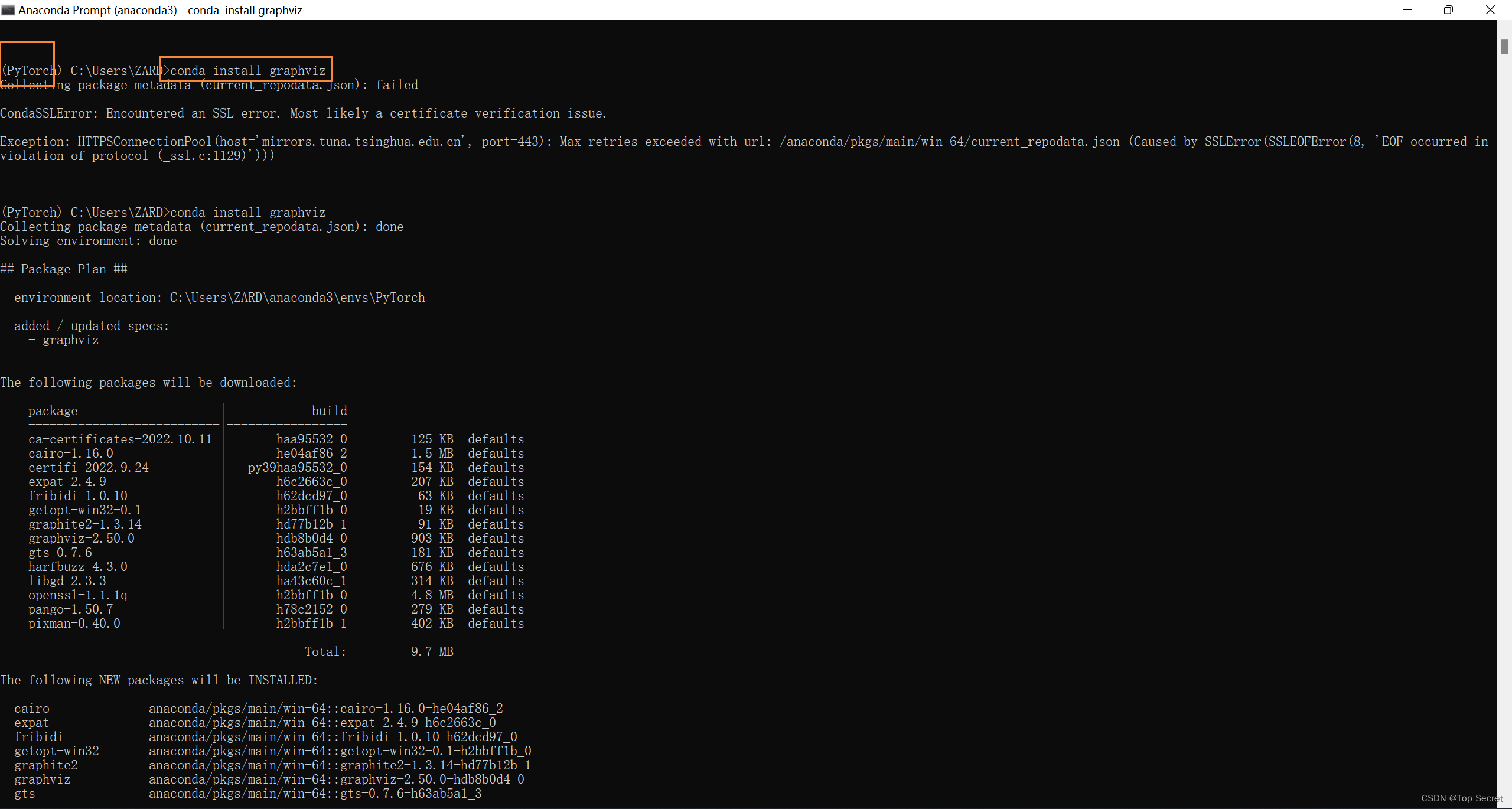 解决:CondaSSLError: Encountered an SSL error. Most likely a certificate verification issue.