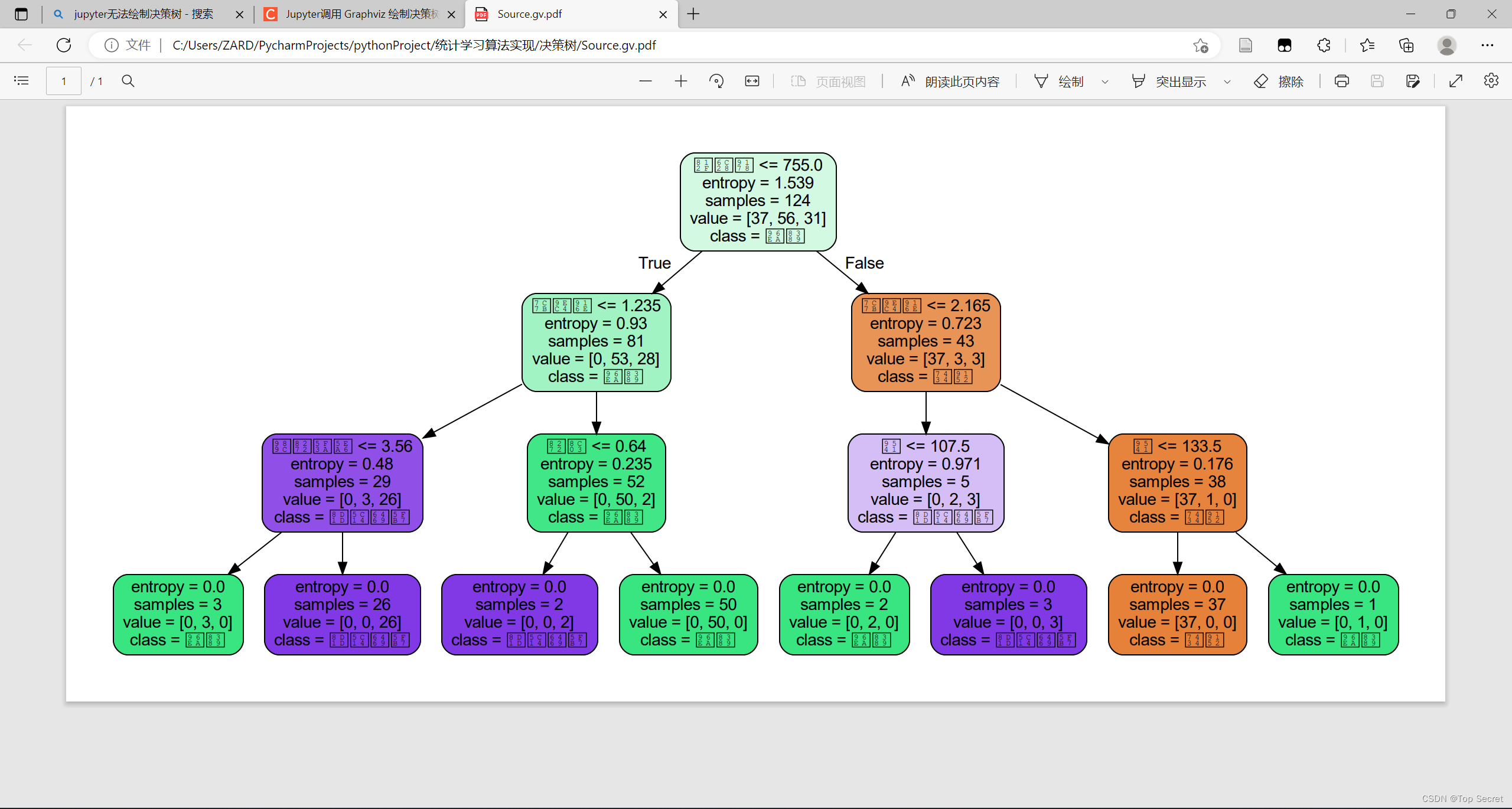 7.问题:pycharm正常画决策树,但jupyter显示:ModuleNotFoundError: No module named 'graphviz'