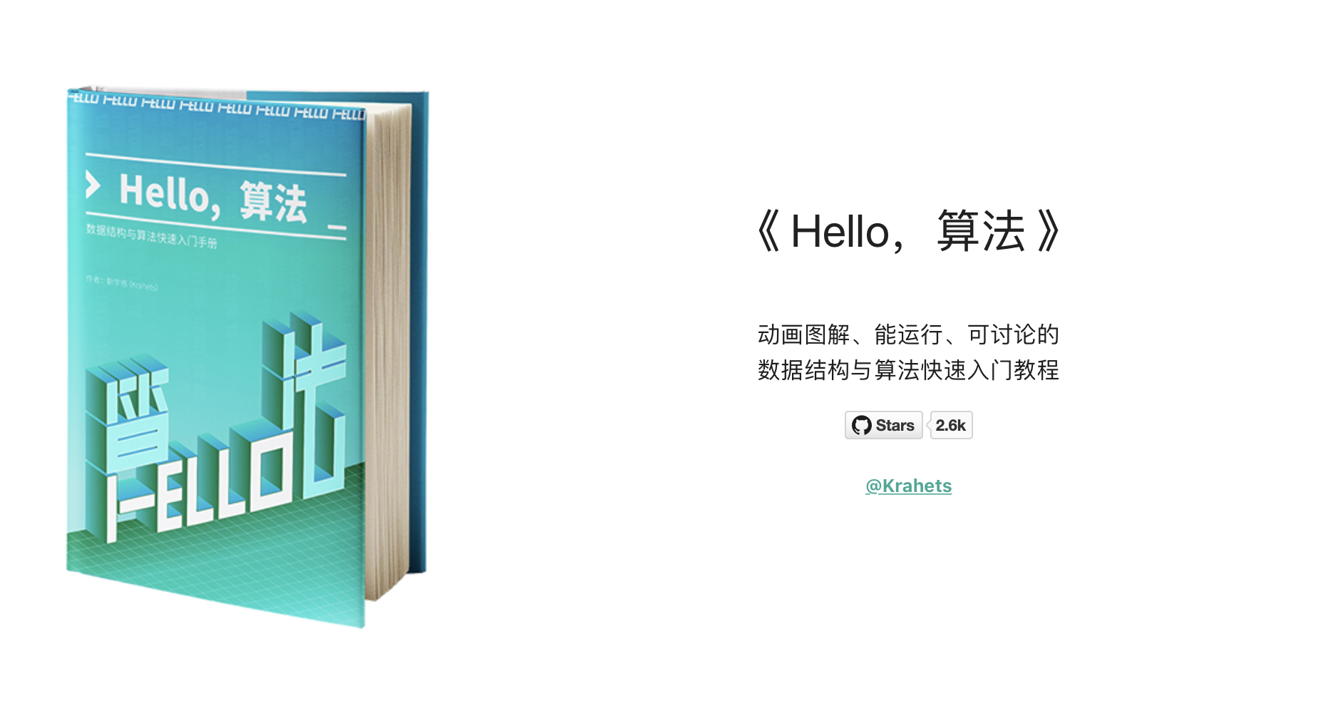 开源书,可以更好的学习算法知识吗? 开源软件、项目、服务等,大家都比较熟悉,开源书大家听过吗?今天,酱酱在逛 GitHub Trending (官方说要将 Trending 下线了,但一直也没下,可别下啊)时,发现近期有个项目热度很高,目前已经获得了 2.6K 的 Star。进一步查阅研究发现是一批开发者发起的讲算法基础的开源书。书的名字叫《Hello 算法》,