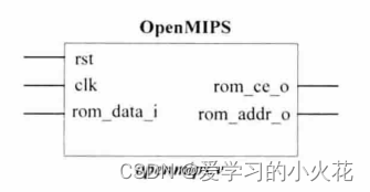 CPU设计实战-最小SOC的实现 顶层模块用于对之前文章里介绍的五级流水线的各个模块进行例化,也就是连线,那么顶层模块的输入输出接口如何呢?首先输入要有时钟复位信号,还要有一个来接收指令存储器里的数据记为rom_data_i输出因为要去读取指令存储器中的数据,所以要输出读地址以及一个使能信号。
