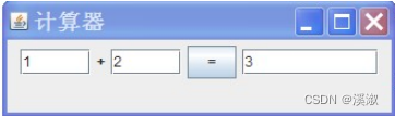 java 编写简易计算器 1.要求:编写代码实现下图简易计算器2.分析:(1)标题名称:计算器(2)三个文本框(JTextField)、一个按钮(JButton)、一个“+”组件(JLable)代码如下:package cdemo;//包import javax.swing.*;import java.awt.*;import java.awt.event.*;public class CDemo extends JFrame implements ActionListener{JTextFi.