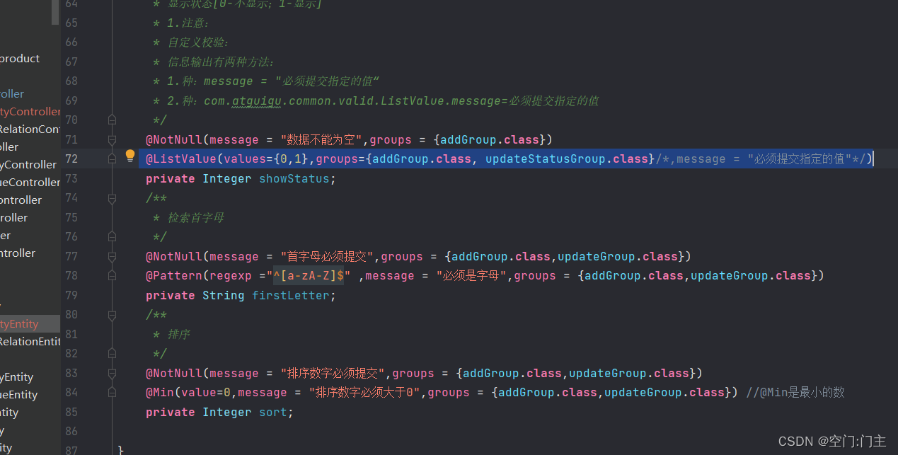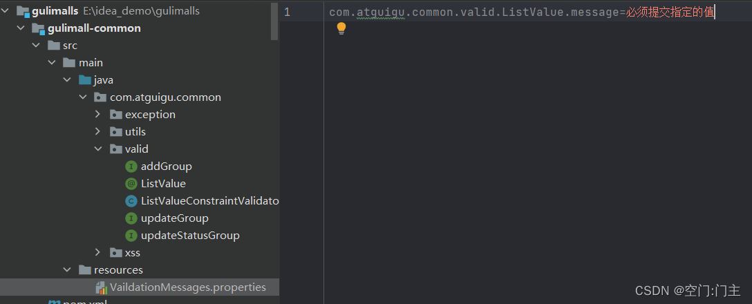 这个消息:message() default "{com.atguigu.common.valid.ListValue.message}";