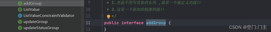 addGroup.class:是一个接口类,简单的来说:就是用来给参数做标记的(里面不需要写任何代码)
