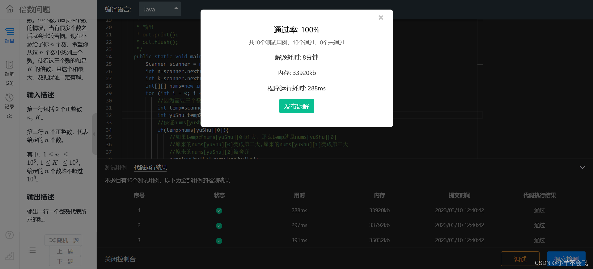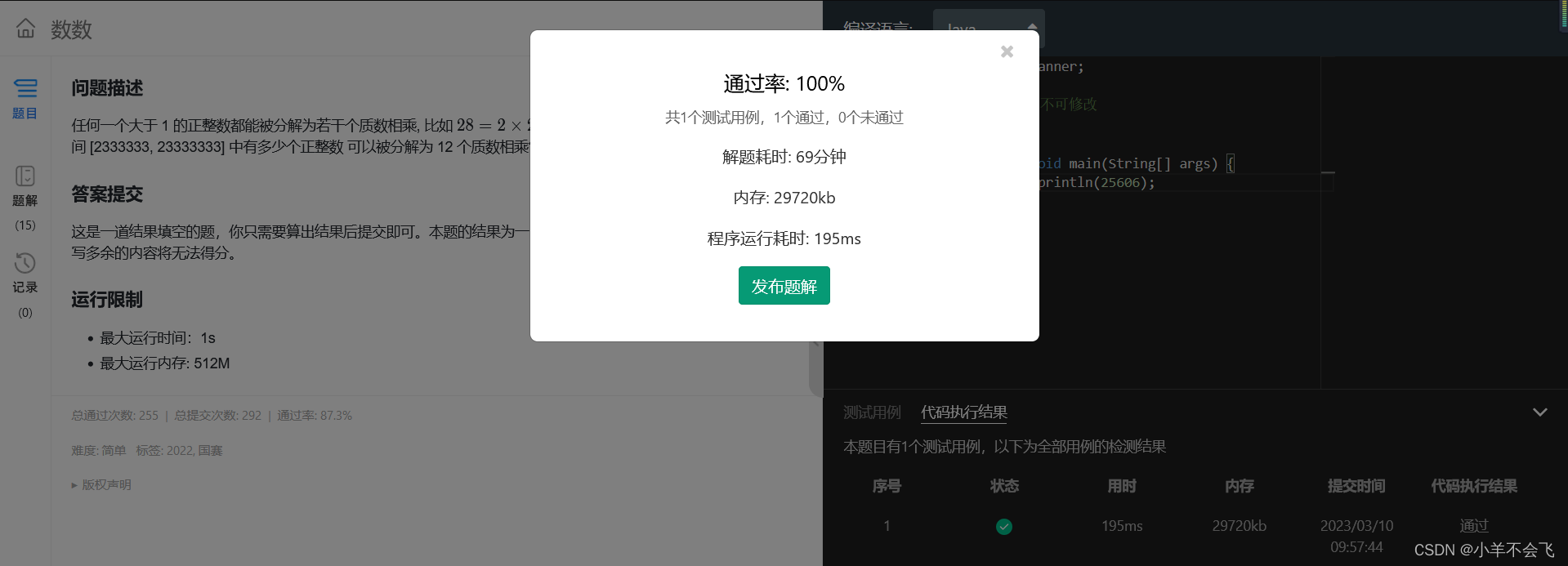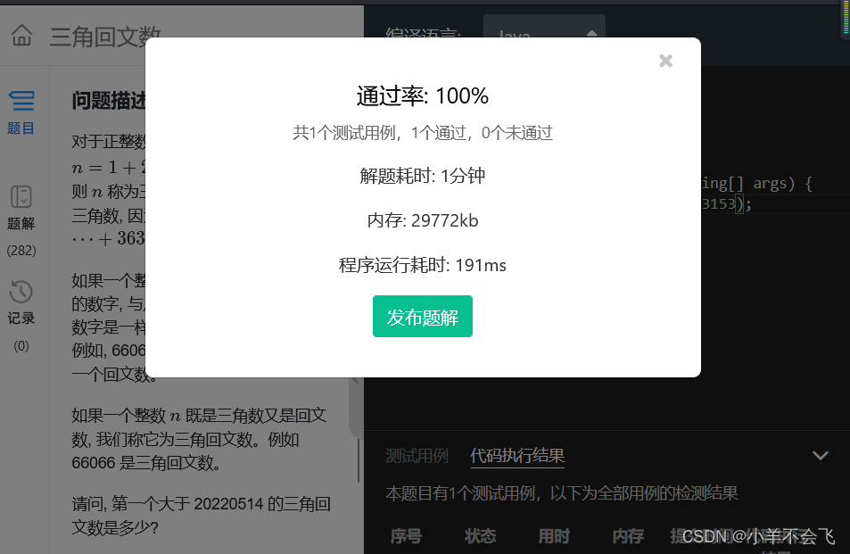 文章提供了三道编程题目,分别是找出大于20220514的第一个三角回文数,计算在给定区间内有多少个数可以被12个质数相乘,以及找到满足特定条件的最大三数之和。每题都附带了Java代码实现,涉及数学和算法知识。