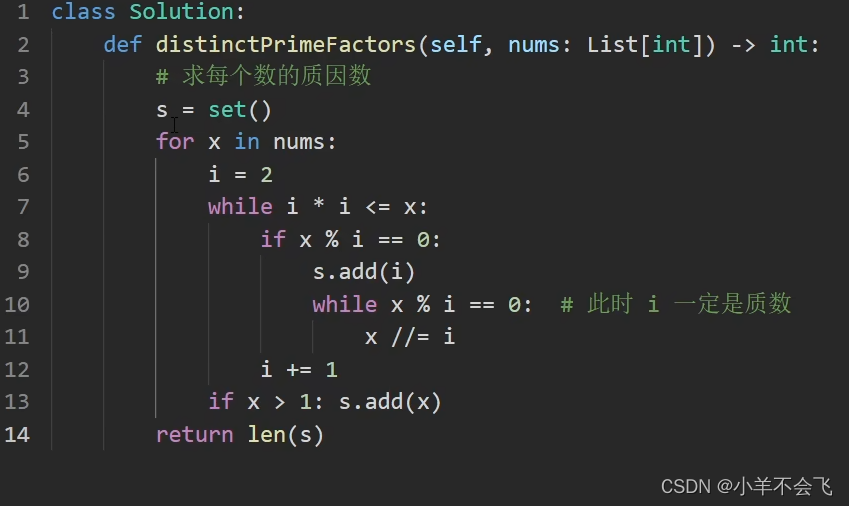 分解并存储每一个不重复(set去重)的质因数的代码: