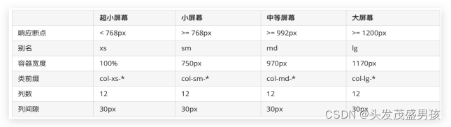 - 栅格类适用于与屏幕宽度大于或等于分界点大小的设备 , 并且针对小屏幕设备覆盖栅格类。 因此,在元素上应用任何 .col-md-* 栅格类适用于与屏幕宽度大于或等于分界点大小的设备 , 并且针对小屏幕设备覆盖栅格类。 因此,在元素上应用任何 .col-lg-* 不存在, 也影响大屏幕设备。