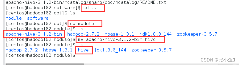 [atguigu@hadoop102 software]$ mv /opt/module /apache hive 3.1.2 bin/ /opt/module /hive