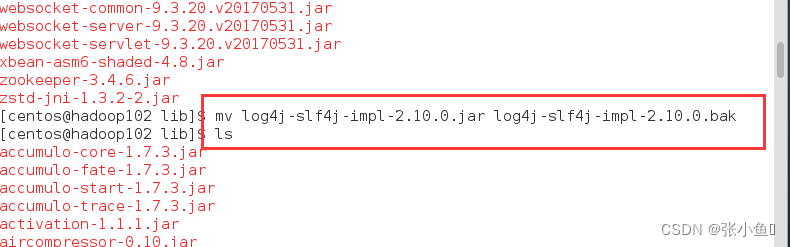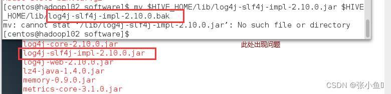 [atguigu@hadoop102 software]$ mv $HIVE_HOME/lib/log4j slf4j impl-2.10.0.jar $HIVE_HOME/lib/log4j slf4j impl-2.10.0.bak