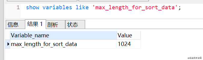 实际上有个参数控制的。这个参数就是max_length_for_sort_data,它表示MySQL用于排序行数据的长度的一个参数,如果单行的长度超过这个值,MySQL 就认为单行太大,就换rowid 排序。我们可以通过命令看下这个参数取值。