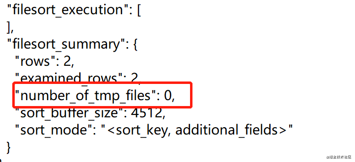 number_of_tmp_files 表示使用来排序的磁盘临时文件数。如果number_of_tmp_files>0,则表示使用了磁盘文件来进行排序。