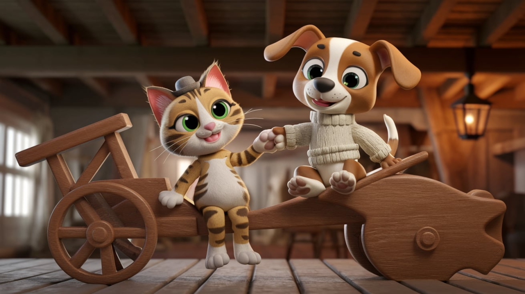 一只猫和一只小狗手拉手玩耍