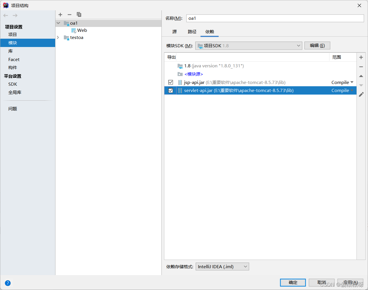 **我是根据这个路径的:请自己找到安装小猫咪的位置:E:\重要软件\apache-tomcat-8.5.73\lib\jsp-api.jar**