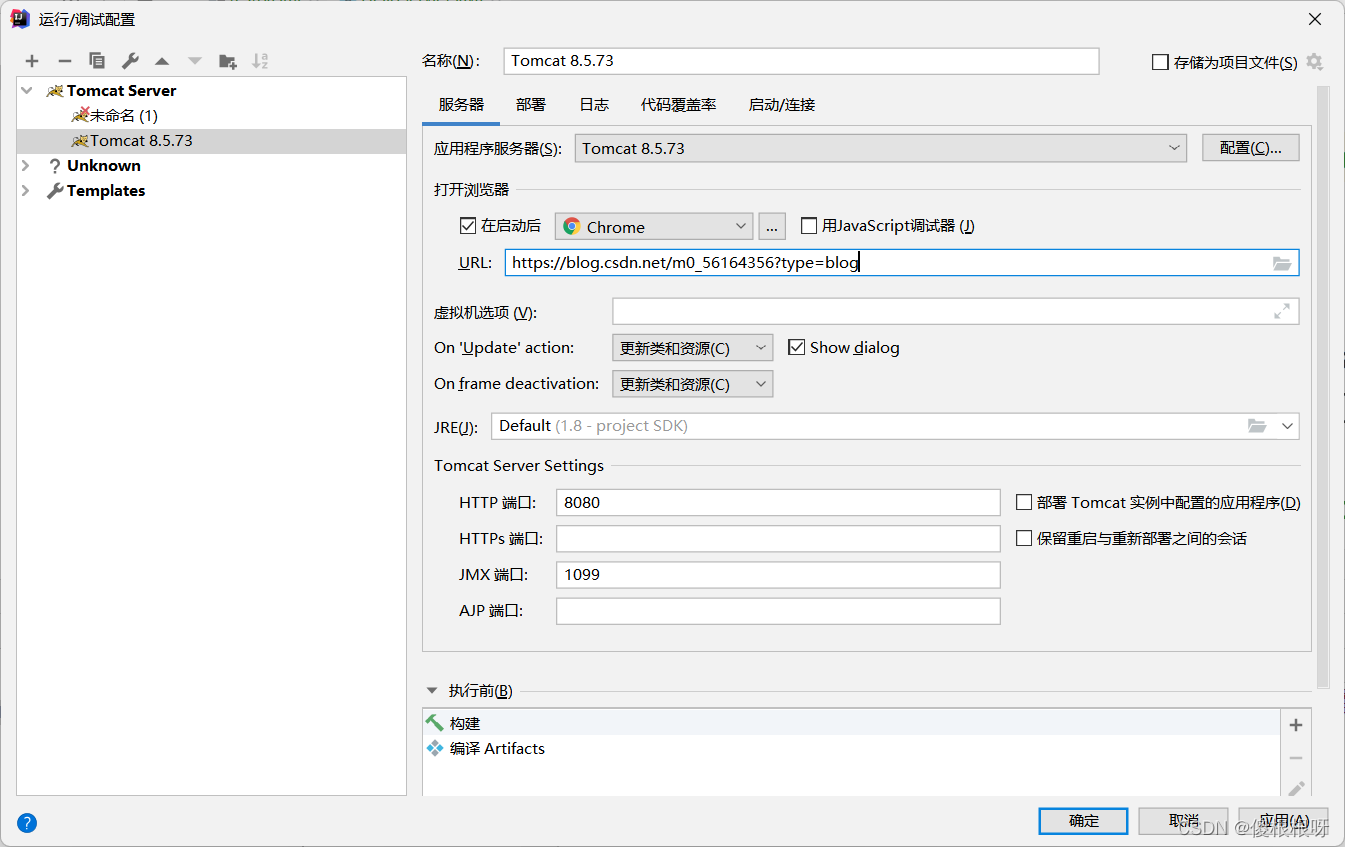 但是咱就是说:通常点了运行开启服务器之后,IDEA和小汤姆猫属于是两个进程啦。两个进程之间建立联系很浪费资源滴,你这设置自动打开的URL这么皮!~然后自己再从URL栏里删除掉地址,再苦哈哈的打上你的项目所在的地方!那可真是脱裤子放屁多此一举了嗷!你的调皮程度也是让我小刀啦屁股,开了眼儿喽!