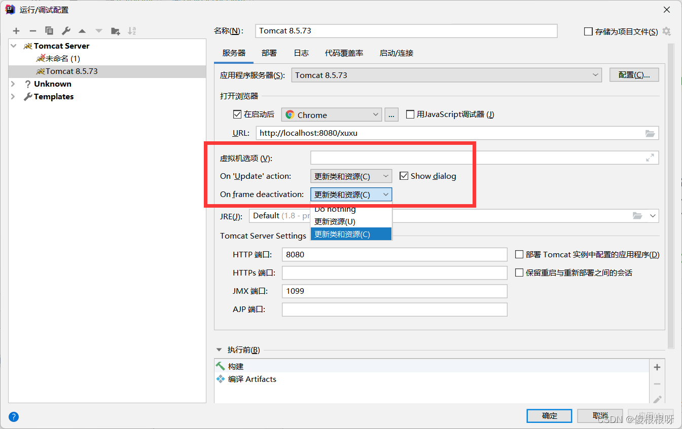 再补一句 war exploded这种热部署模式的通常是需要将其 设置为 classes and resources update 更新类和资源的!