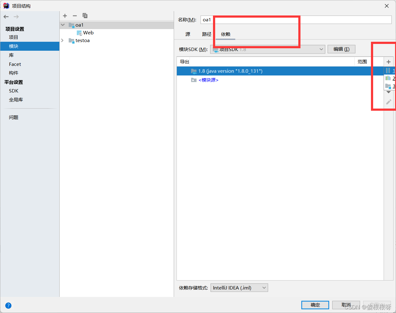 文件(File)----->项目结构(Project Structure)----->依赖(dependcies)