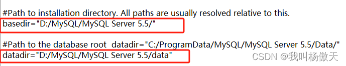 打开basedir下的my.ini文件,将datadir设置为MySQL安装位置下的data文件中即可