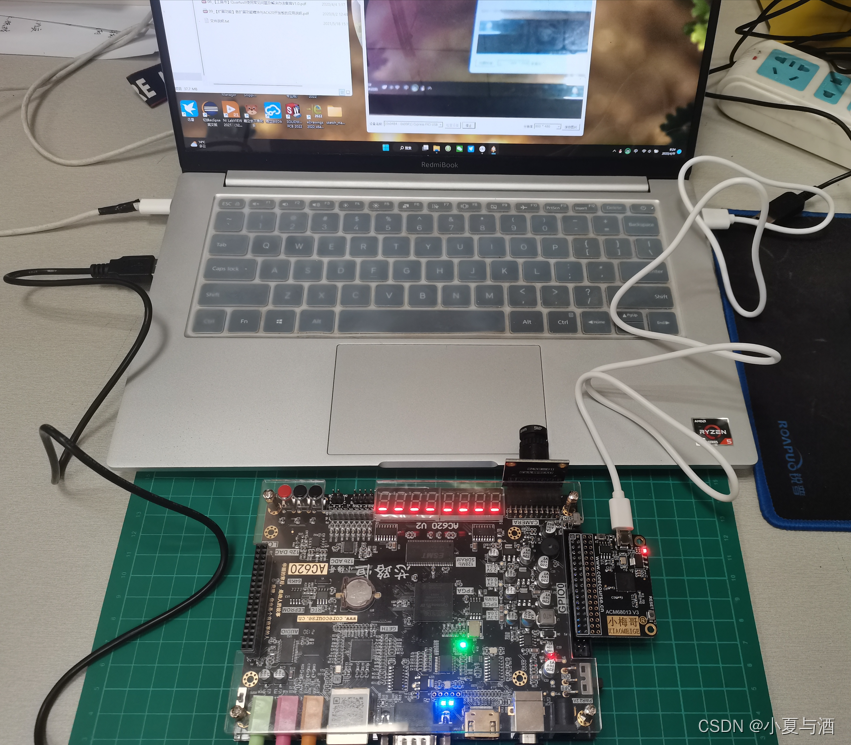 将ACM68013模块和OV5640摄像头模块按照AC620V2开发板的对应位置接好,如图所示: