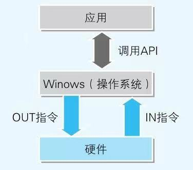 利用操作系统提供的系统调用功能就可以实现对硬件的控制,在Windows中,系统调用称为API,各API就是应用调用的函数,这些函数的实体被存储在DLL文件中;