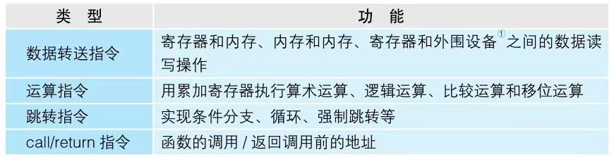 CPU执行的指令就四种:存取数据、运算数据、逻辑跳转、函数的调用和回退;