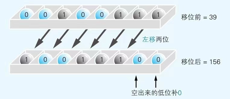 十进制数左移后变成原来的10倍、100倍、1000倍,二进制数左移后就会变成原来的2倍、4倍、8倍...