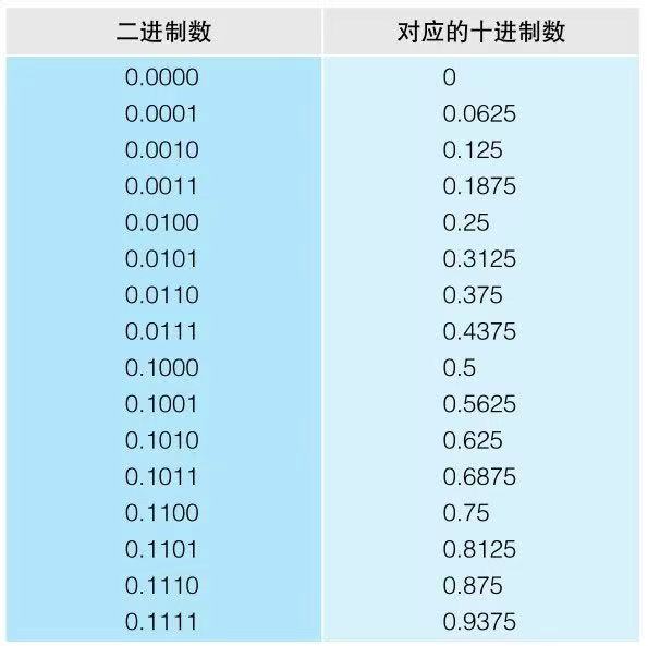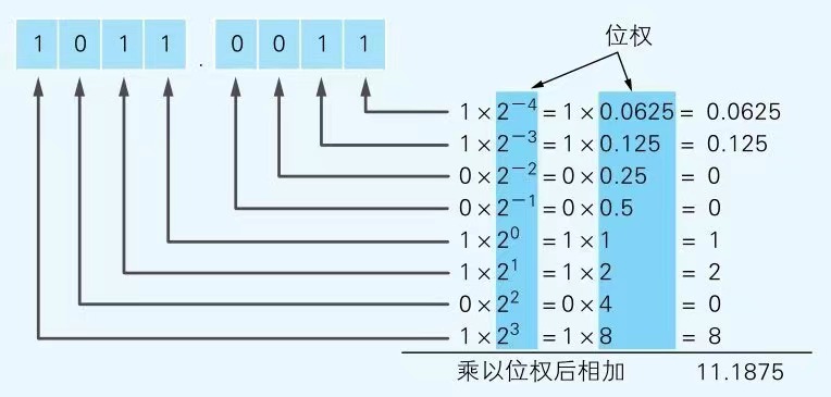 二进制数小数点前面部分的位权,第一位是2的0次幂、第二位是2的1次幂...小数点后面部分的位权第一位是2的-1次幂...